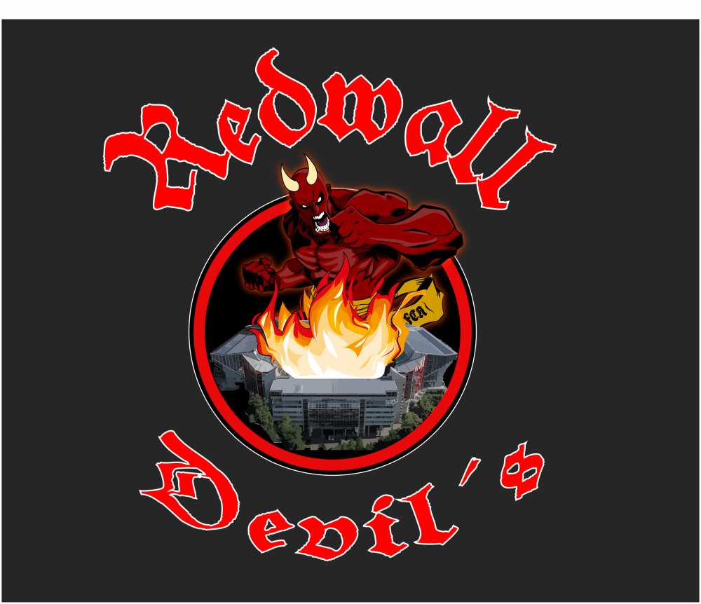 3. Die Typografie als Statement: Der Name „Redwall Devils“ ist in einer klassischen, gebrochenen Schrift (Fraktur/Old English-Stil) gesetzt. Das verleiht dem Ganzen Tiefe, Tradition und eine gewisse Schwere. Es wirkt „Old School“, loyal und unnachgiebig – genau das, wofür viele Fanclubs stehen.